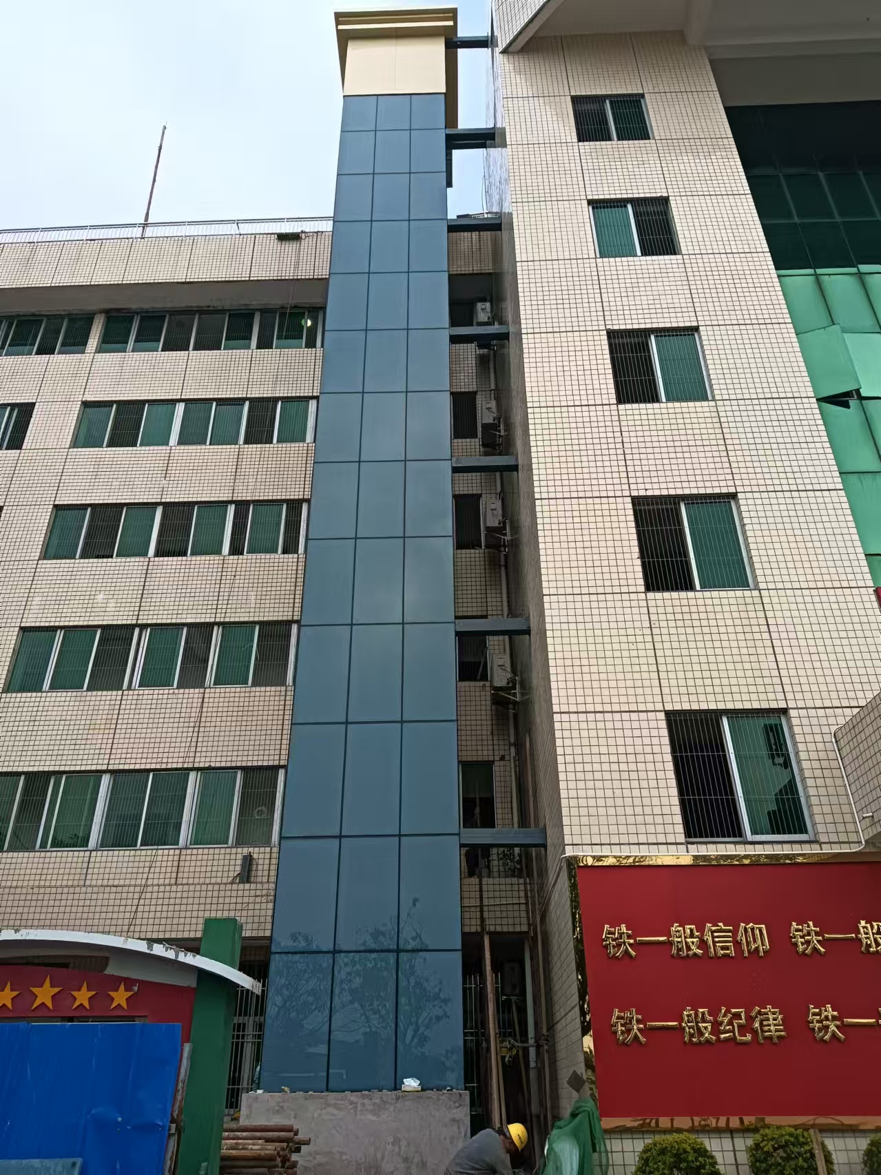 本項目為汕尾某部營區加建玻璃電梯井項目,由我司深化安裝;玻璃幕墻為隱框玻璃幕墻。歡迎社會各界朋友蒞臨參觀指導!