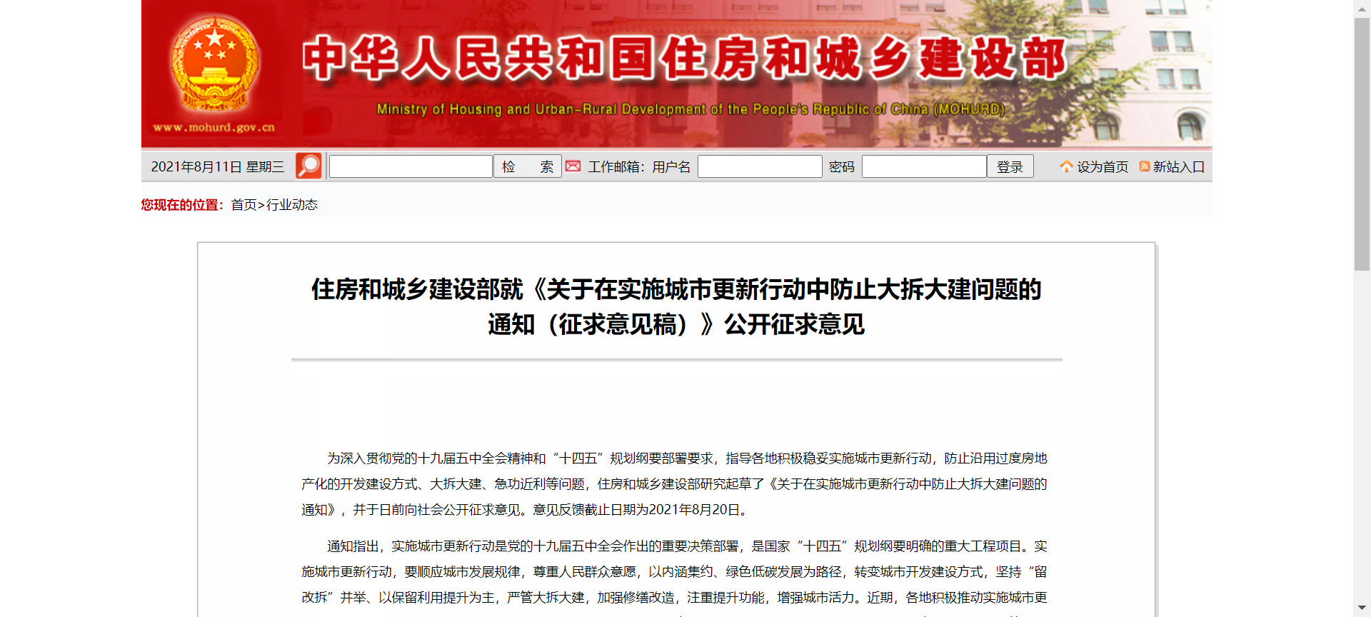 住建部發文關于在實施城市更新行動中防止大拆大建的問題
